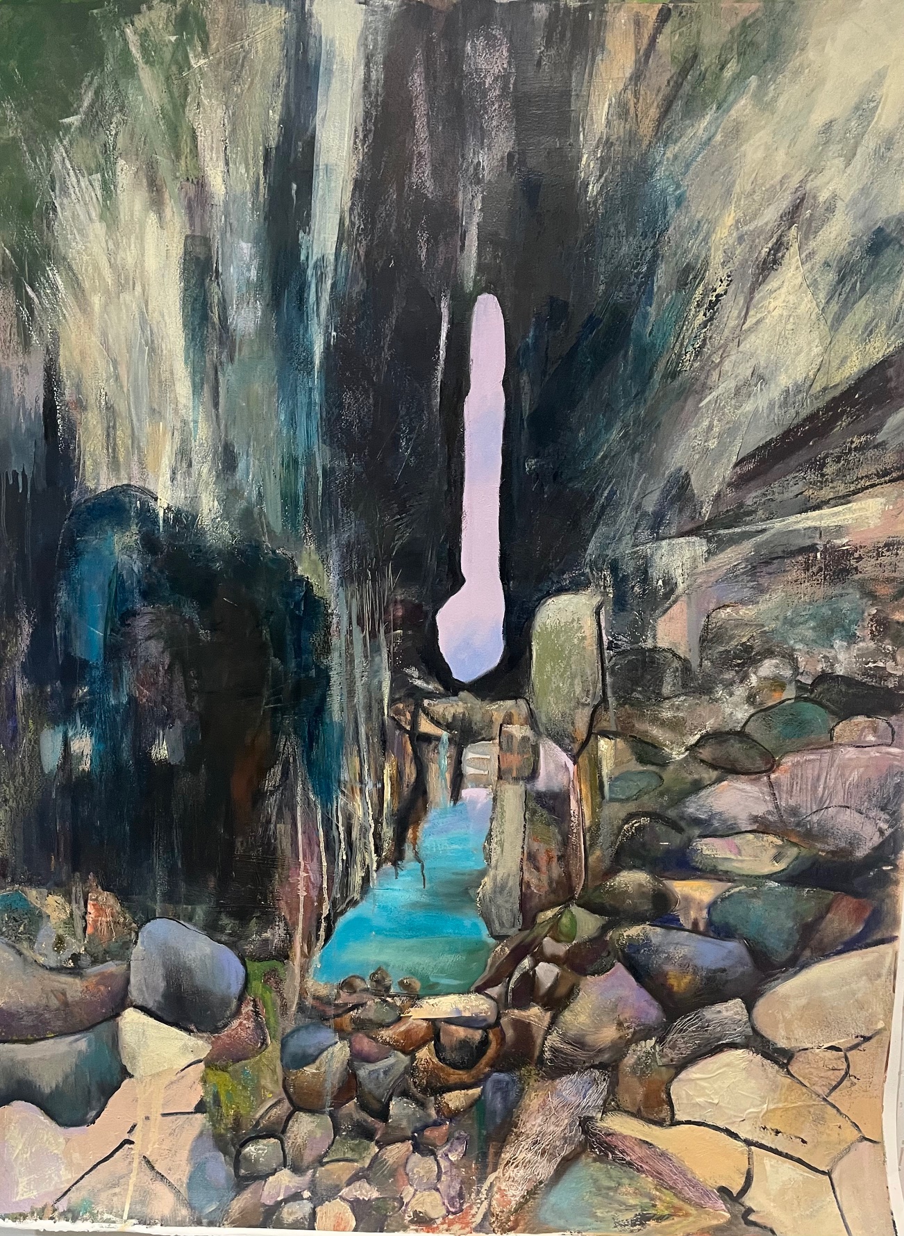 Karen is inspired by the wild places of this world often sea and rocky shores. She draws on her Celtic origins to give her paintings an untamed emotional and spiritual connection to a place. Her paintings often convey the drama and movement of nature and previous ancestral links with the landscape.