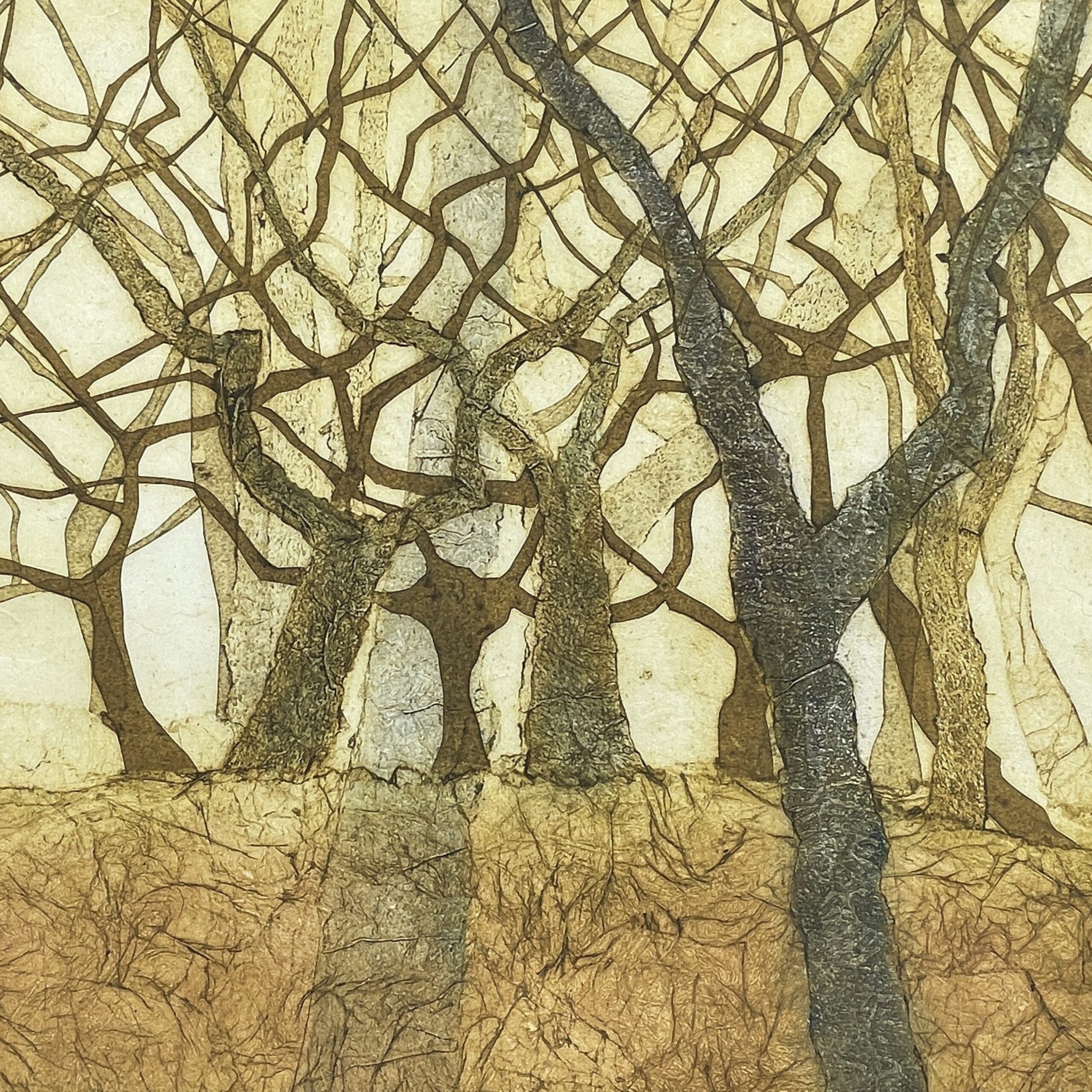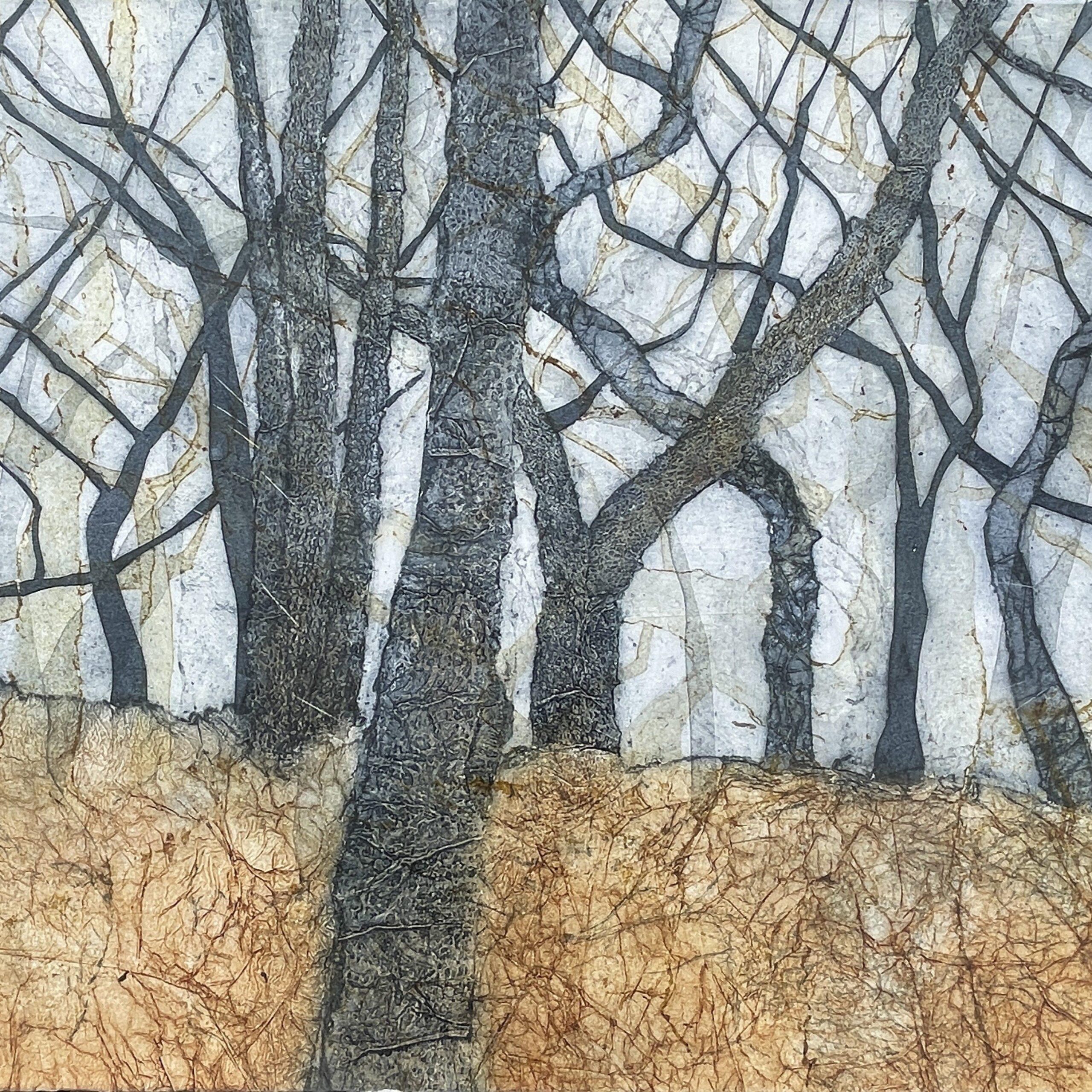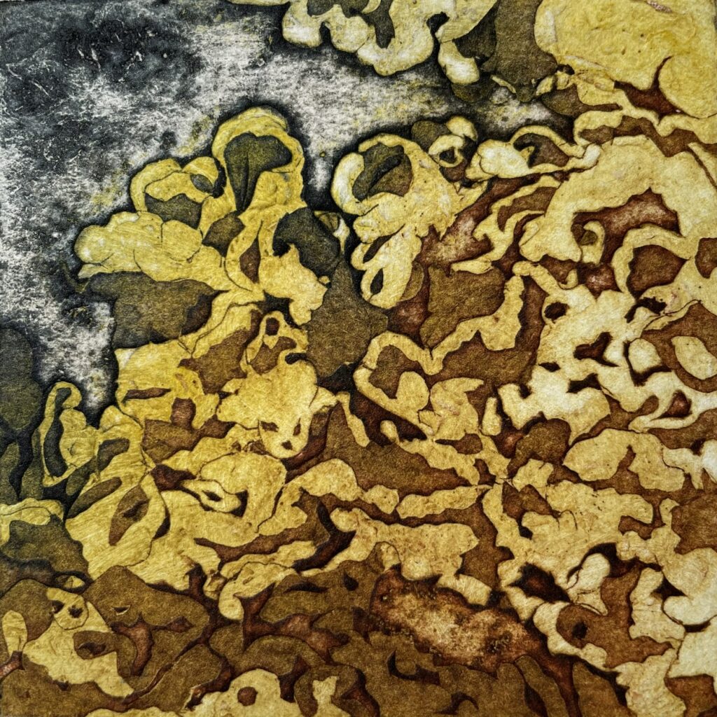 I am drawn to twisting trees, intricate lichens, wind in the canopy, and waves at the shoreline. These immersive encounters guide my responses. Each piece becomes a quiet record of fleeting moments and a response to the fragility and subtle beauty of landscape. My practice continues to evolve as an exploration of printmaking and as a personal meditation on place, impermanence and presence.