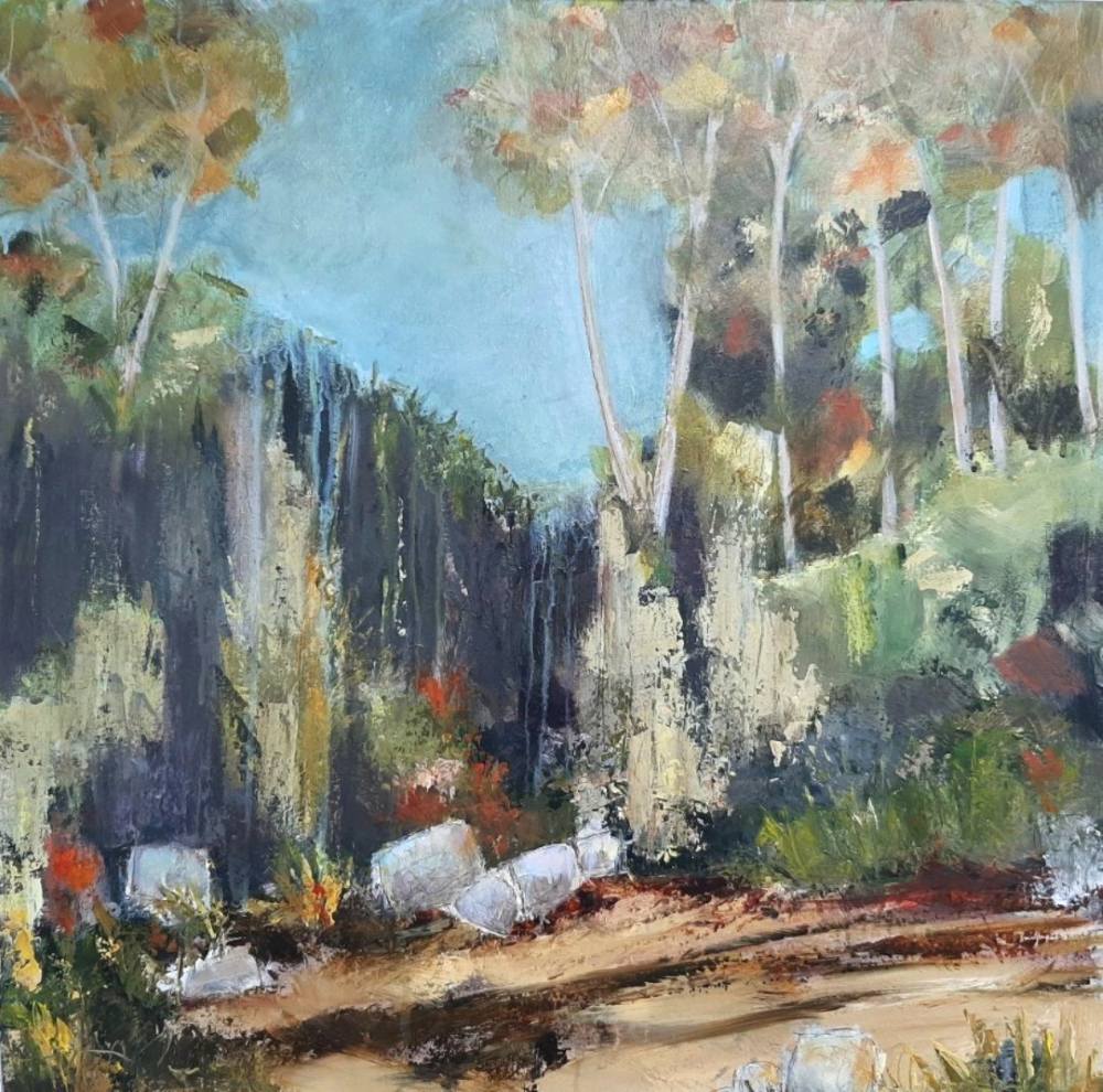 Influenced by the artists  Diebenkorn, Hitchens, Lanyon and the group of Fauve Painters, Mary enjoys the journey through mark making which she feels gives her work the initial energy, and following with mixed media, specifically acrylic, ink and collage, allowing her work to develop gradually over time and often working through the seasons.